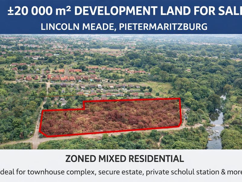 Create a thriving mixed-use community in Lincoln Meade, Pietermaritzburg’s fast-growing corridor — serviced 20,076m² site with mixed-residential zoning and on-site 500kV transformer substation.