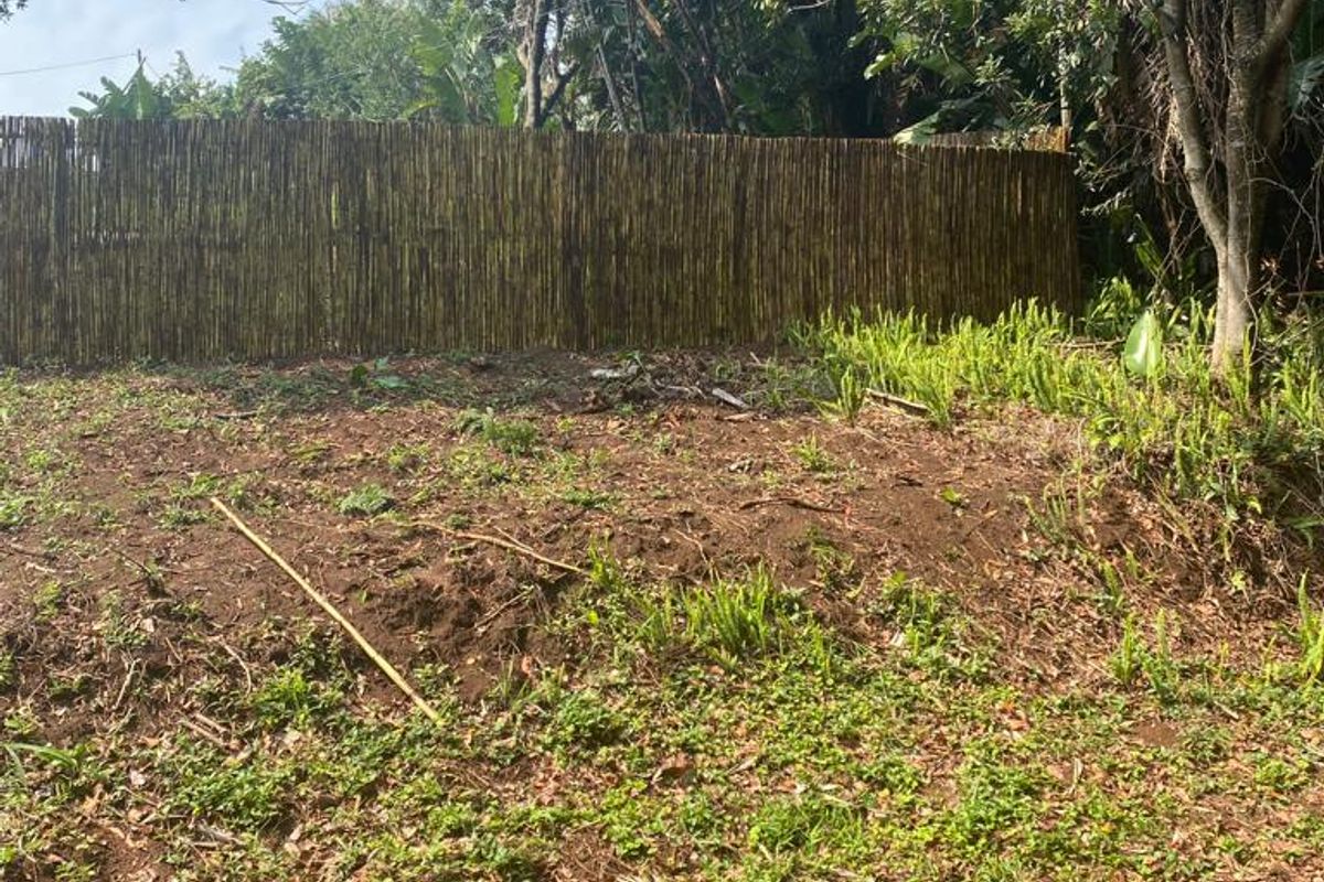 The plot has been cleared and has been recently fenced with bamboo fencing.