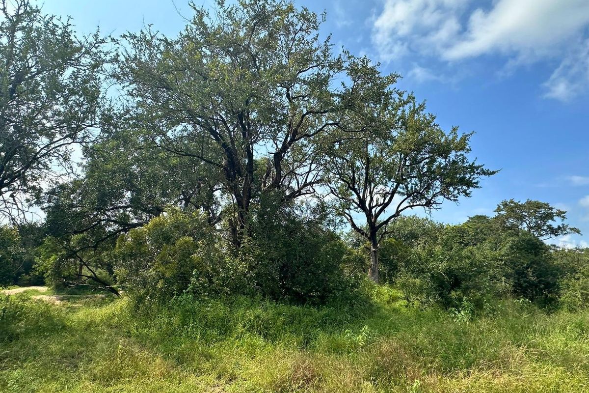 Live among roaming wildlife with riverfront bushveld in northern Moditlo near Blue Canyon gate — 1.2ha stand with seasonal river frontage, mature leadwood and marula trees, flat building site.