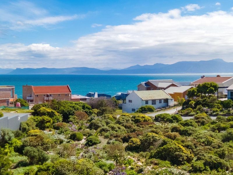 Coastal lifestyle opportunity in De Kelders—an elevated corner 520 m² plot overlooking Walker Bay, steps from the shoreline, whale-watching points, hiking trails and a swimming beach.