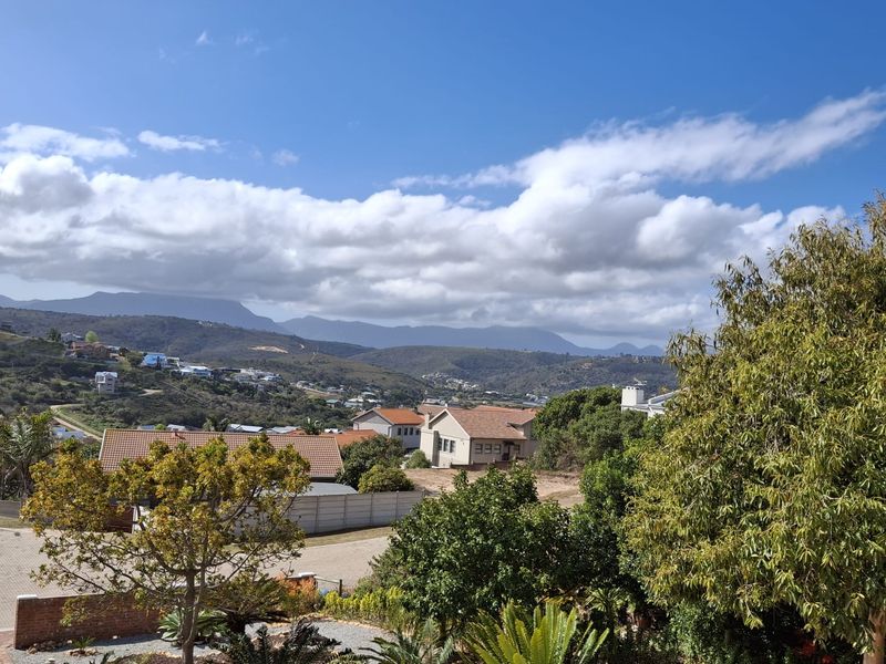 Hilltop living with sweeping mountain views in Avonddans Country Estate, between George and Mossel Bay; secure, gated community with 882 m² building-ready plot and 24-hour controlled entrance.