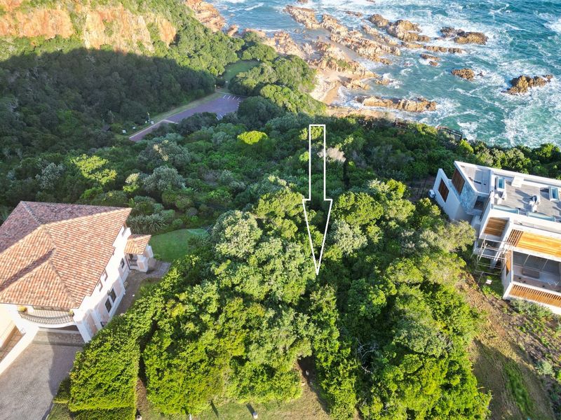 Coastal clifftop plot, 753 m², no building time limits, views of Knysna Heads and ocean activity.