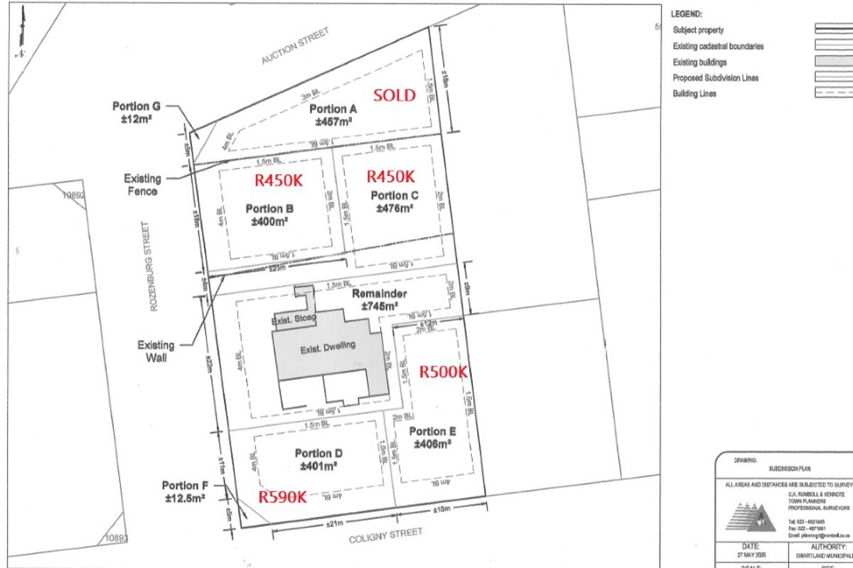 Create your ideal home in peaceful Dalsig, enjoying neighbourhood charm on four 400 m² vacant plots — Portion B R450k, C R450k, D R590k, E R500k.