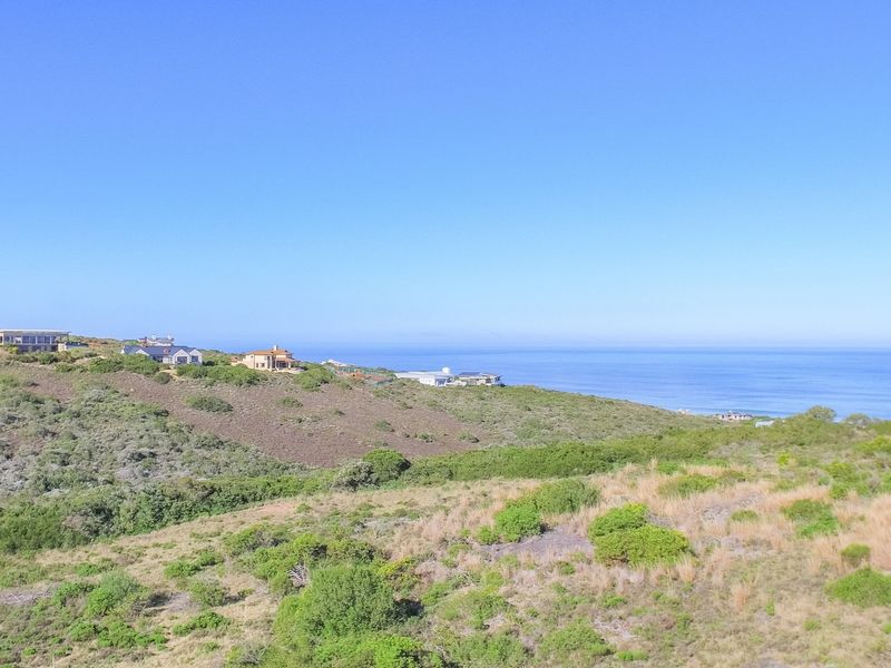 Coastal living with private beach access in Moquini Coastal Estate between Dana Bay and Mossel Bay; front-row 4,328 m² stand with panoramic Nautilus Bay views and ready architectural plans.