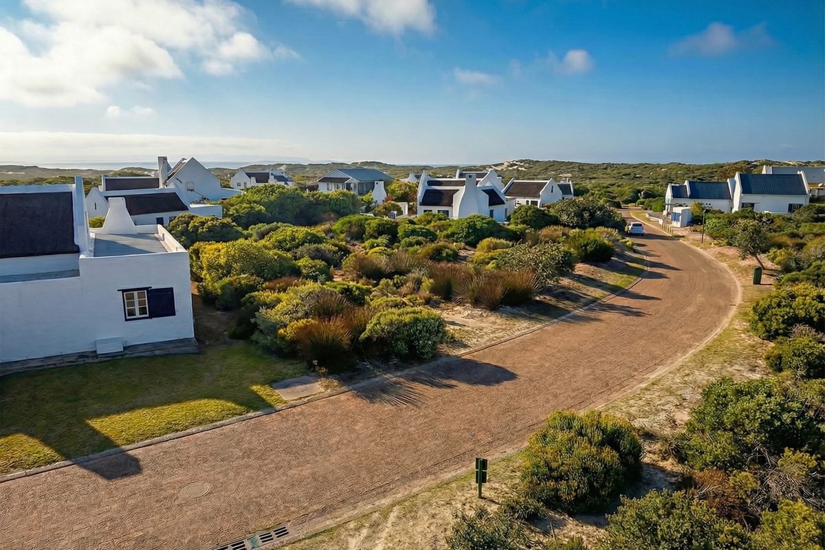 Coastal lifestyle steps from a 14km swimming beach in Langezandt Fisherman's Village, Struisbaai — rare north-facing 967sqm level stand in an established, architecturally controlled estate.