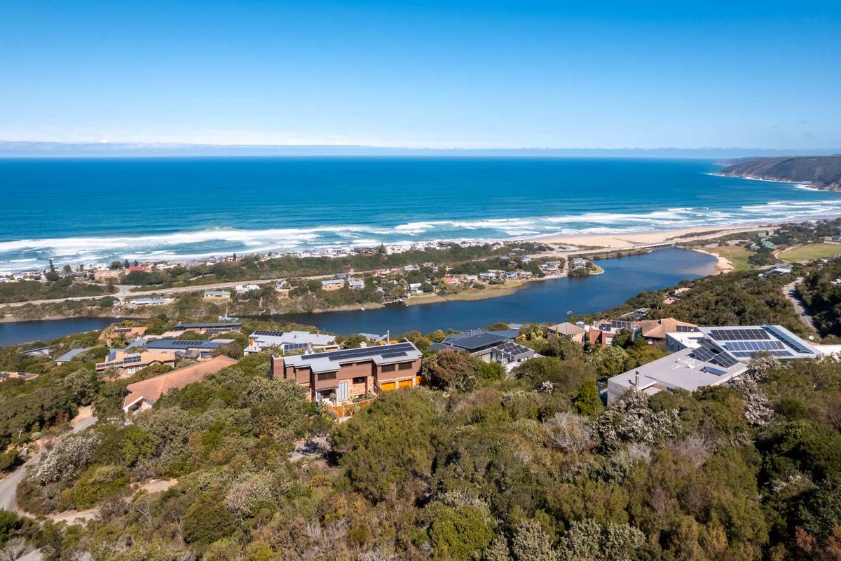 Commanding panoramic views over the Indian Ocean and lagoon from a private, elevated 939 m² stand atop Constantia Kloof — minutes from Wilderness village, beaches and national park.