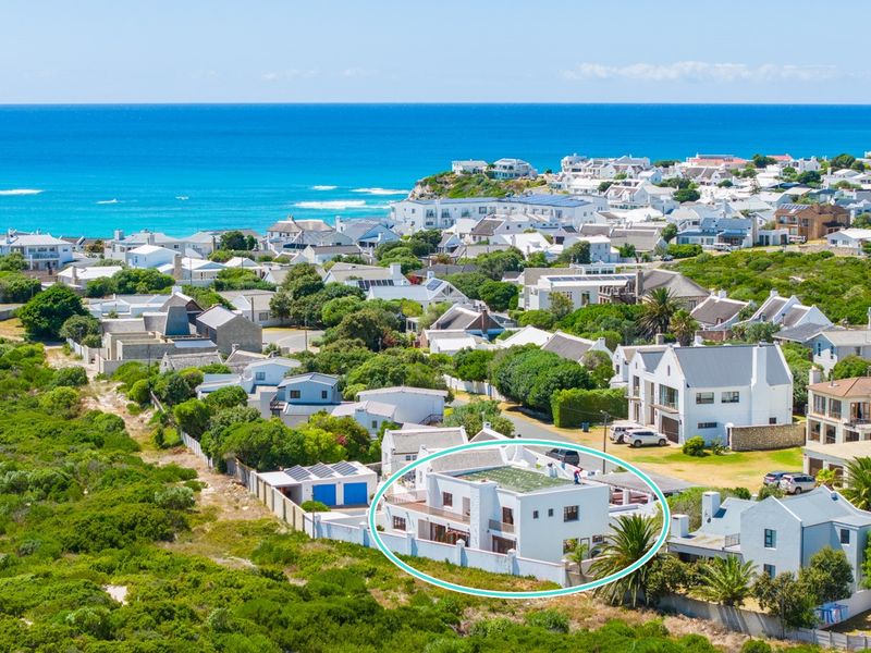 Seaside lifestyle in Arniston, steps from the beach and Arniston Hotel — open-plan living with private braai room and fire pit. Four bedrooms, 3.5 baths, two covered parking.