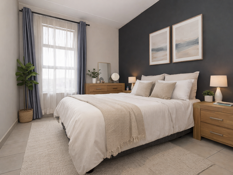 Coastal lock-up-and-go lifestyle minutes from Blouberg beachfront in The Residence — low-maintenance open-plan apartment with 24-hour security, one bedroom, one bathroom and covered parking.
