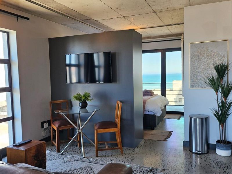 Beachside urban-chic apartment steps from the shore with Table Mountain and Atlantic views, ideal as a lock-up-and-go or Airbnb. Balcony with built-in braai and secure basement parking.