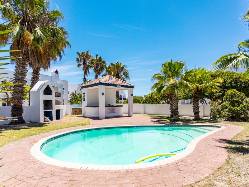 Relaxed coastal living in West Beach, steps from Blouberg beachfront and MyCiTi — ground-floor apartment with private patio, communal pool and braai; two beds, one bath, covered parking.