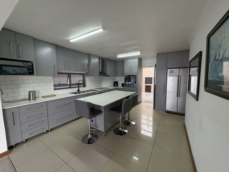 Perfect for multigenerational living in Malibu Village, Blue Downs — close to schools and shops. Five-bedroom main plus one-bedroom flatlet, pool with fountain, upstairs entertainment balcony.