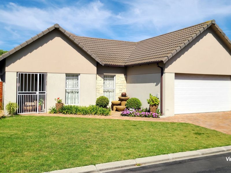 Relaxed family living in Merlot Estate's secure, gated community near shops and schools. Open-plan layout with indoor braai and covered courtyard for year-round entertaining; three beds, two baths, double garage.