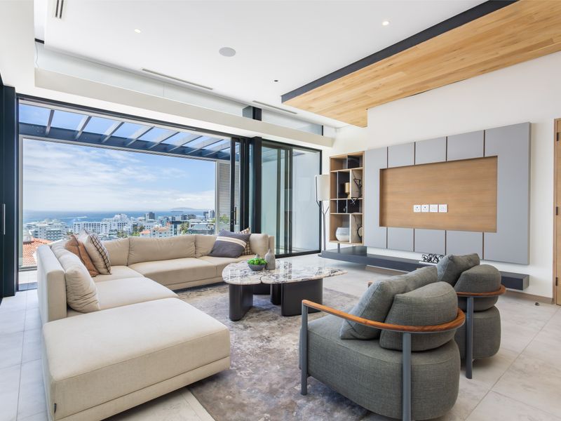 Coastal living in Bantry Bay, steps from Sea Point Promenade and cafés; open-plan flow to entertaining terrace with plunge pool framed by Lion's Head views.
