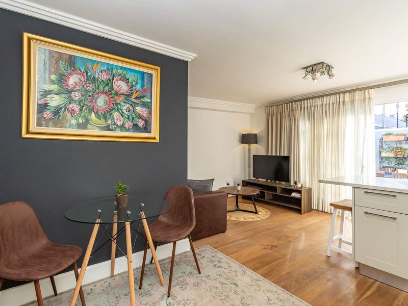 Wake up to golden east-facing light and Hottentot Holland Mountain views in Claremont; enjoy a private patio — two-bedroom, 1.5-bath with two secure parking bays.