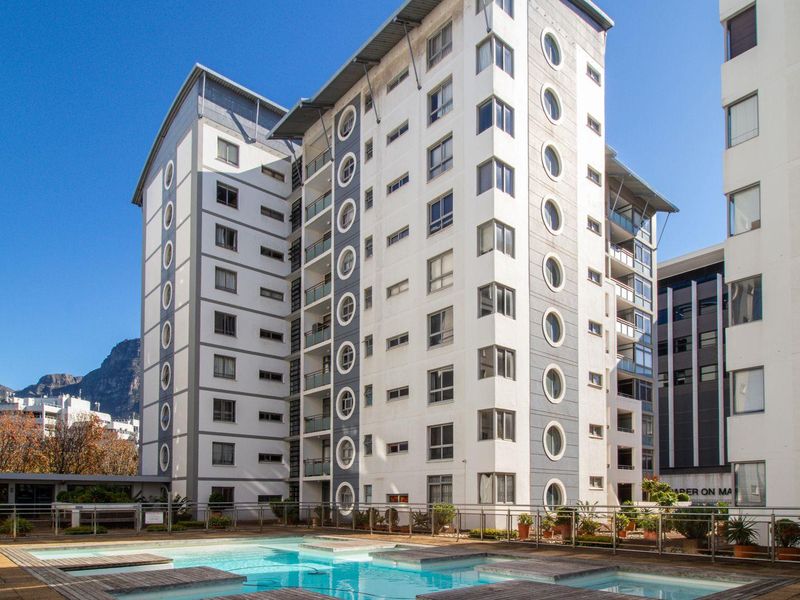 Elevated urban living with uninterrupted Table Mountain views from The Beaumont in Upper Claremont — walking distance to Cavendish Square, modern open-plan layout and two ensuite bedrooms.