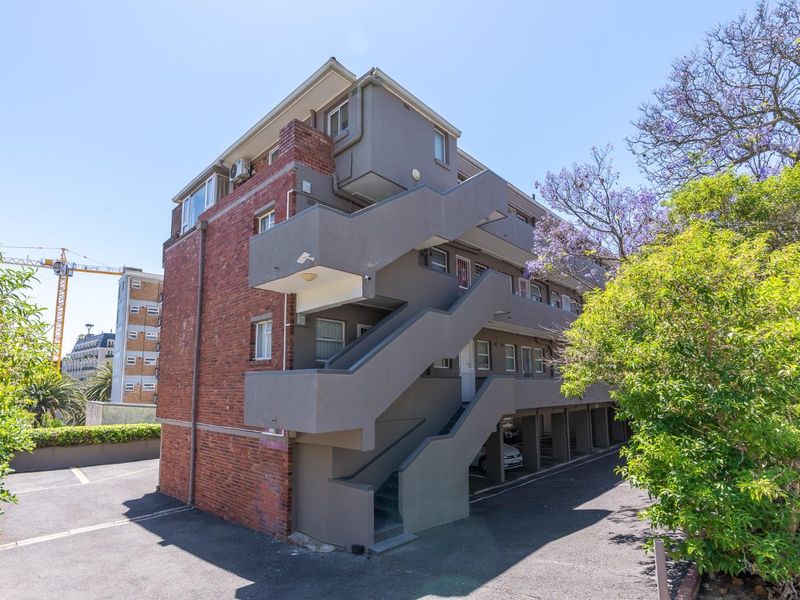 Enjoy vibrant Green Point living on a quiet leafy road with mountain and ocean views — renovated top-floor studio with balcony, pet-friendly, short-term rentals permitted and two covered parking bays.