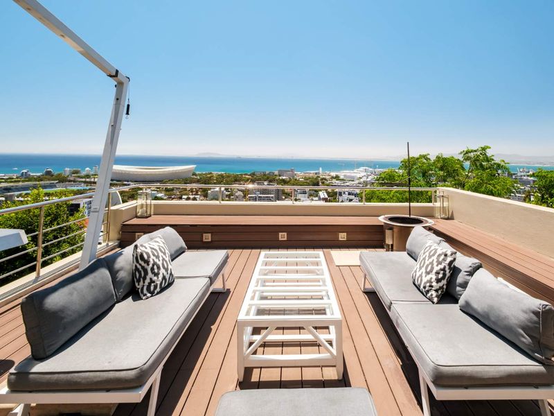 Experience elevated coastal city living in Green Point, steps from cafés and the stadium, with ocean and Robben Island views, balcony with built-in braai, and a lock-up garage.