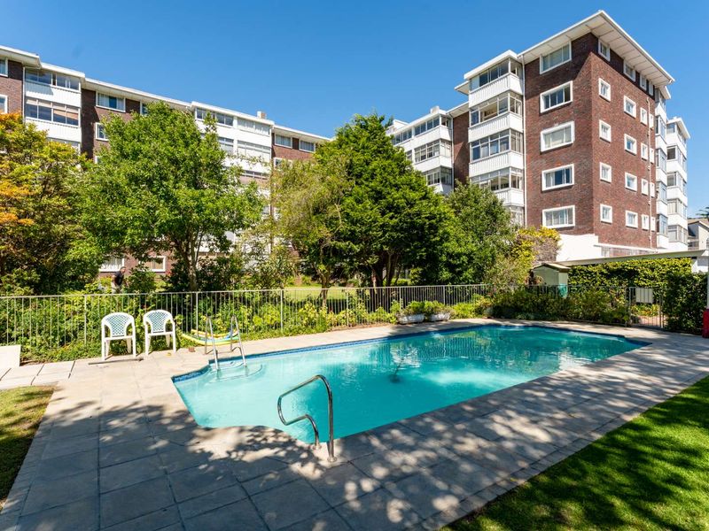Enjoy Rondebosch living steps from Dean Street cafés, shops and Cavendish Square — bright open-plan apartment with spacious balcony, communal pool access and two bedrooms, two bathrooms.