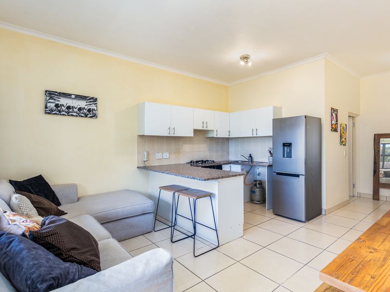 Relaxed lock-up-and-go village living in sought-after Rondebosch Village, with a sunny private back garden and bright separate lounge — two bedrooms, one bathroom, off-street parking.