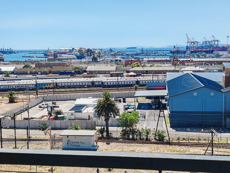 Urban living in vibrant Woodstock with harbour and Table Mountain views — an open-plan studio flowing onto a private balcony; ideal for investors or city dwellers, includes one bathroom.