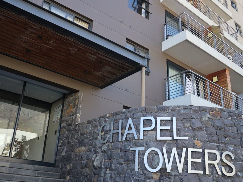 City-centre living with panoramic Table Mountain and harbour views, minutes from the V&A Waterfront and universities; Chapel Towers offers a rooftop pool and entertainment deck, two-bedroom apartment with secure parking.