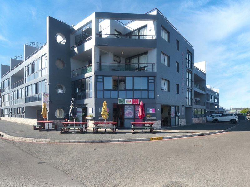 Enjoy laid-back seaside living in Gansbaai's Baleana Bay, steps from eateries and the shore, with a private balcony offering sea and mountain views; two beds, two baths, underground parking.