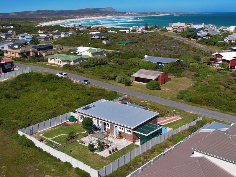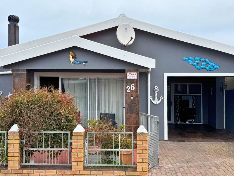 Relaxed coastal living in Pearly Beach Resort on the Whale Coast, steps from unspoiled beaches and whale watching; covered stoep and indoor braai, three bedrooms, single carport.