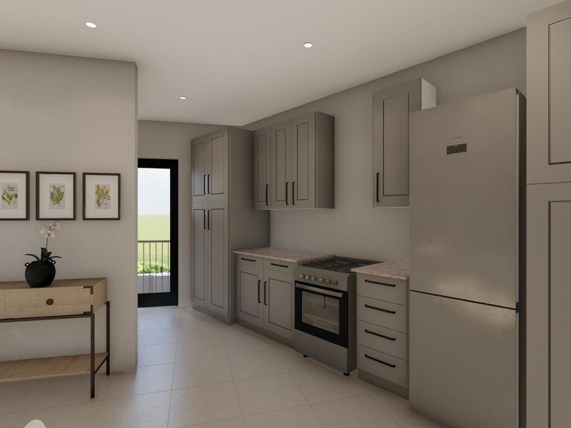 Perfect lock-up-and-go living for first-time buyers and downsizers, adjacent to a green belt. Choose finishes; enjoy a covered patio with braai, modern scullery kitchen, two beds, two baths, single garage.