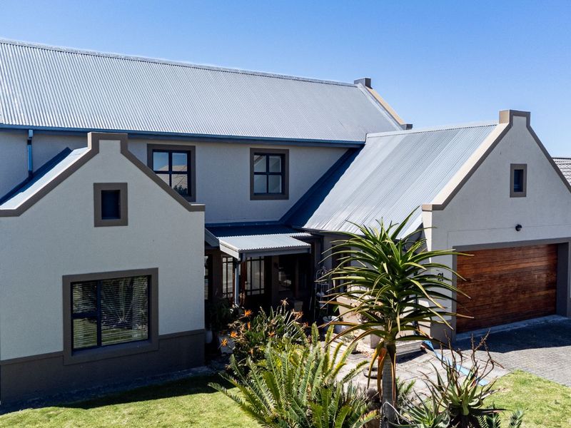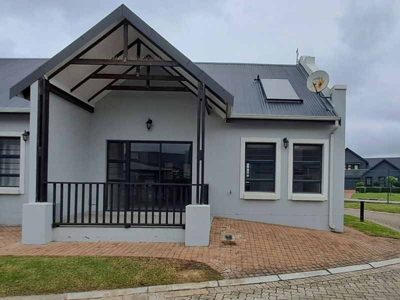 Live a relaxed Garden Route lifestyle with Outeniqua mountain views and secure estate living; open-plan interior with high trusses, large yard and built-in braai — two bedrooms, two bathrooms, double garage.