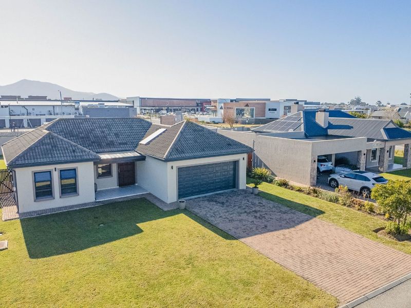 Peaceful Garden Route estate living near the Mall and top schools, with a covered entertainment patio and built-in braai — versatile three-bedroom, two-bath family home.