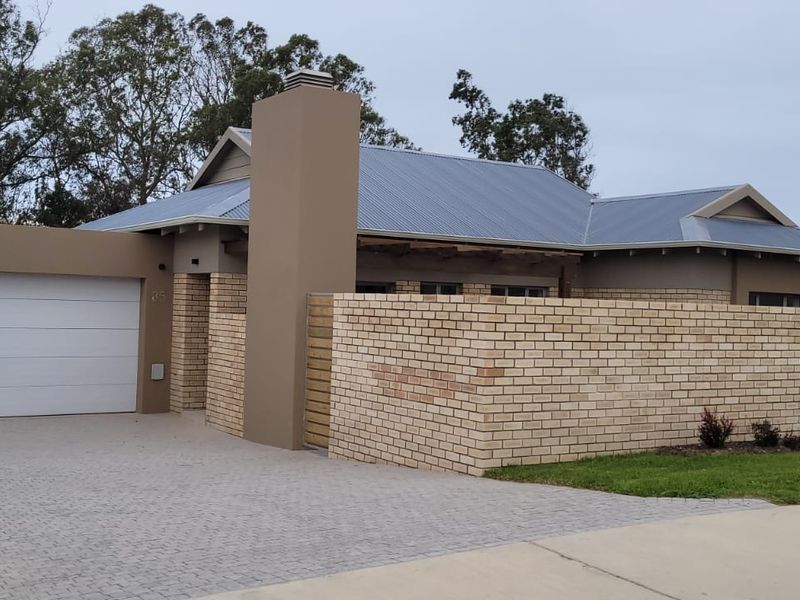 Country-estate living in the Garden Route's Mooikloof Country Estate, Hansmoeskraal near George — open-plan home with private garden and built-in braai, three bedrooms, two baths and double garage.