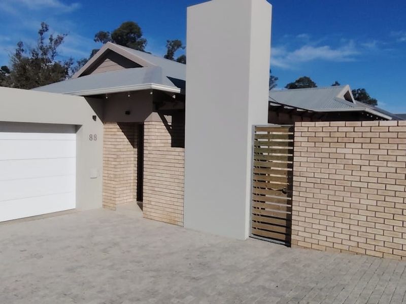 Retire or invest in relaxed, secure estate living in Mooikloof Country Estate near George — entertaining covered patio with built‑in braai, modern kitchen and manicured garden. Three bedrooms, two garages.