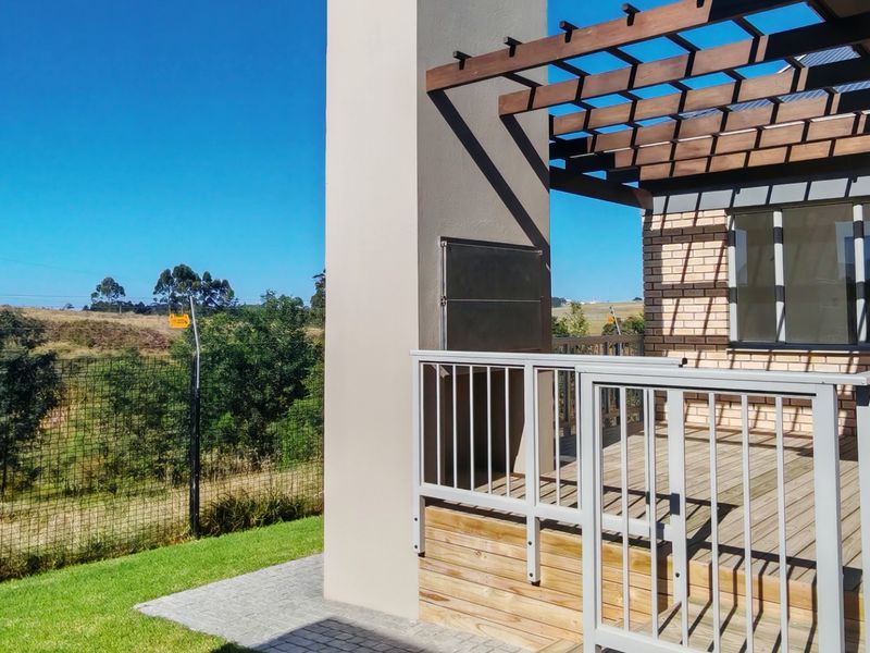 Enjoy relaxed Garden Route living in Mooikloof Country Estate, Hansmoeskraal — private garden and patio with built-in braai, open-plan modern kitchen, and double garage.