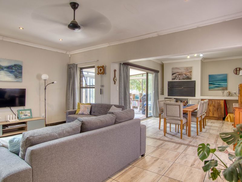Coastal family living beneath Helderberg Mountain in Gordon's Bay, with indoor braai and sunroom opening to a secure garden. 3 beds, 2 baths, double garage.