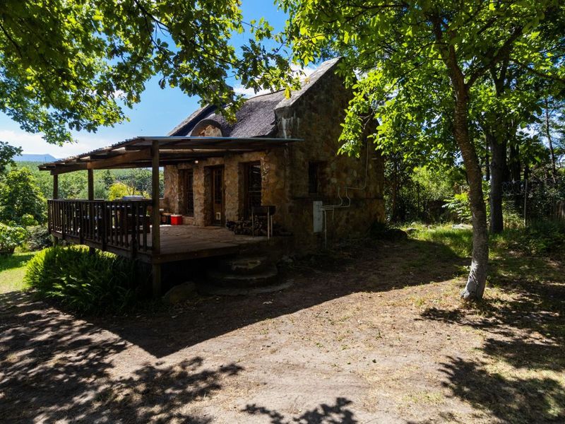 Country-lodge living among lush apple farms, ideal for investors; two thatched stone cottages with olive, lemon and nut trees and river-irrigation permit — two beds, two baths.
