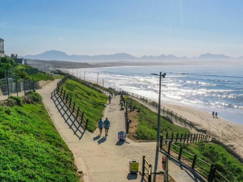 Beachside living with ocean views and short strolls to Hartenbos beach, shops and entertainment; private elevator from single garage. Four bedrooms, four bathrooms.