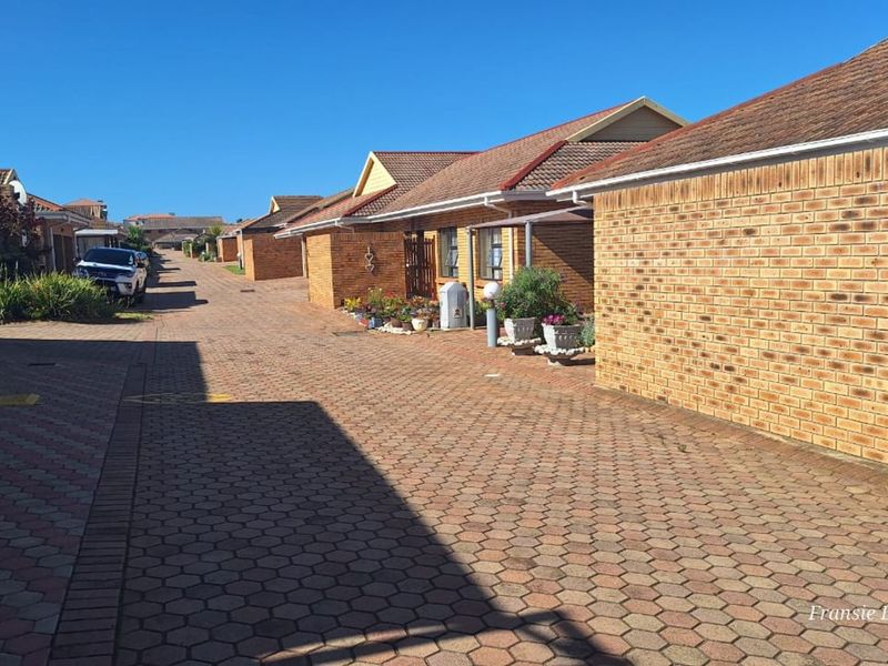 Relaxed coastal living in Hartenzicht Security Complex, Hartenbos — minutes from ATKV and the waterfront. Single-level townhouse with enclosed braai room, manicured communal gardens, two bedrooms and double parking.
