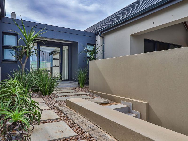 Coastal living steps from Mossel Bay beaches in Hartland Lifestyle Estate, 24/7 security and pet-friendly community with walking and cycling trails; two-bedroom, 2.5-bath, double covered parking.