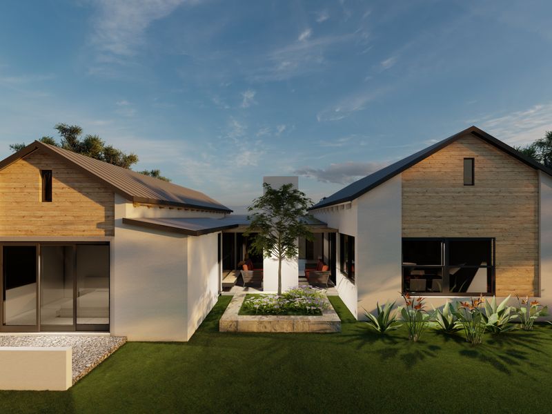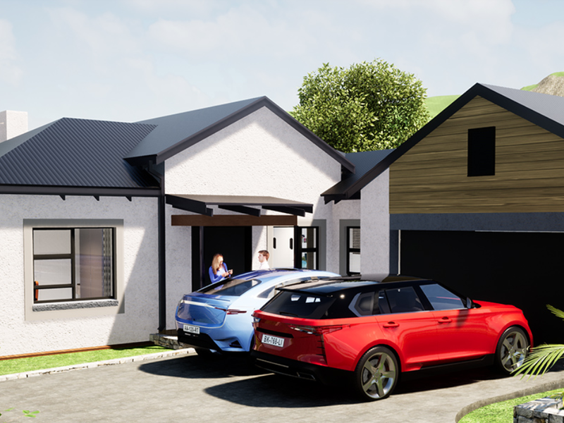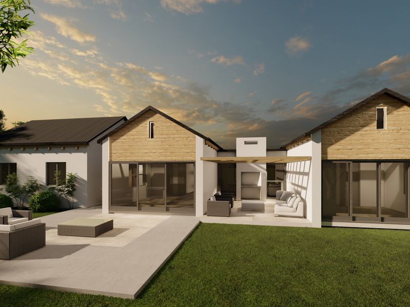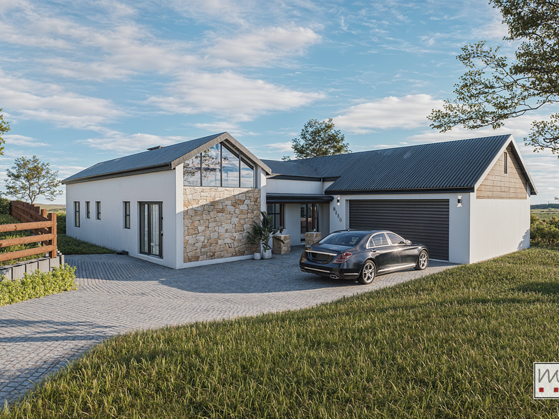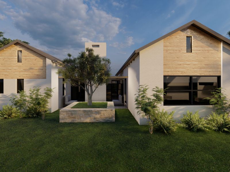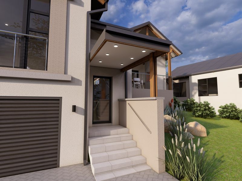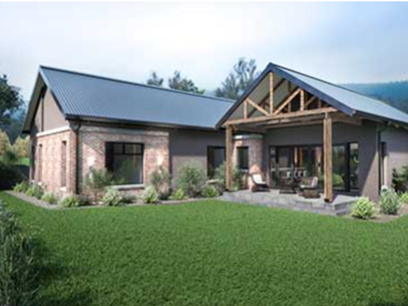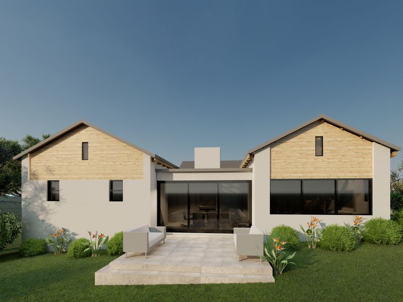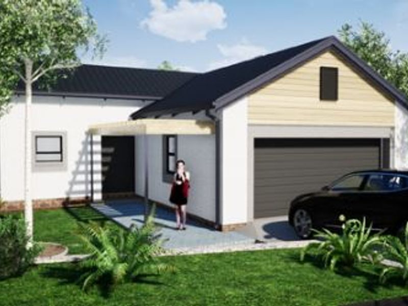 Coastal living in Hartland Lifestyle Estate — secure, pet-friendly community with walking and cycling trails, minutes from Mossel Bay beaches. 3-bedroom building package excluding land, 2 bathrooms, double covered parking.