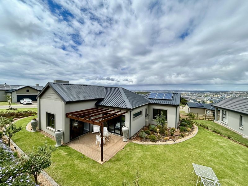 Seaside estate living in Hartland Lifestyle Estate, Mossel Bay with greenbelt tranquillity. Double balconies boast panoramic sea views and built-in braai; three en‑suite bedrooms, open-plan kitchen and double garage.