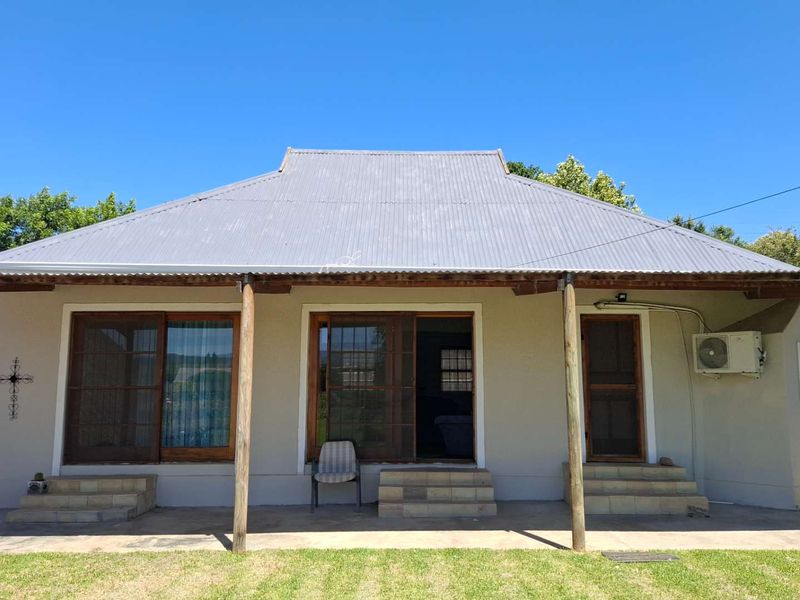 Slow mornings on the verandah with Langeberg mountain vistas — country soul, town convenience. Expansive vegetable-ready garden, thatched lapa and braai area; two bedrooms, two bathrooms, single garage.