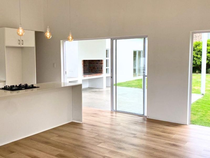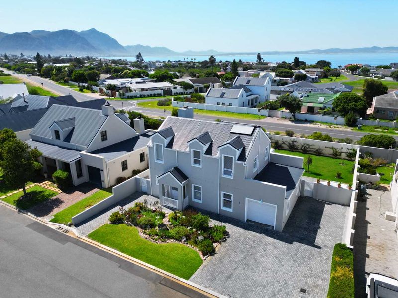 Embrace everyday coastal living steps from Hermanus' New Harbour and cliff paths, with open-plan living, built-in braai and covered patio — three bedrooms, two bathrooms and double garage.