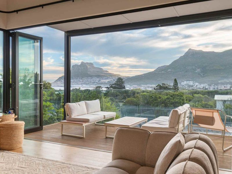 Embrace Hout Bay living within walking distance to cafes, shops, beach and Chapman’s Peak; open-plan home with balcony capturing panoramic bay views and a large lawned garden.