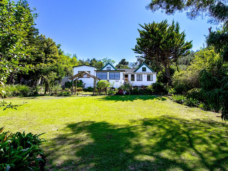 Relaxed family living with elevated lagoon views in Upper Knysna Central, steps from Knysna High School and shops; full-length wooden deck, pool terrace, private established garden and three bedrooms.