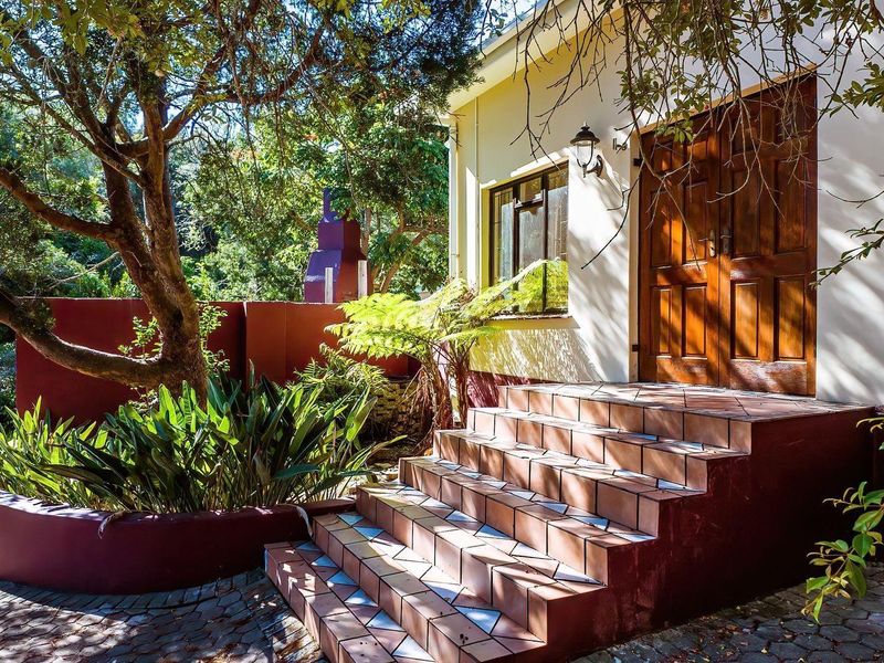 Holiday retreat for relaxed entertaining in Knysna, set in mostly level gardens with a pond and yellowwood trees. Huge indoor entertainment area with built-in braai; three bedrooms, double garage.