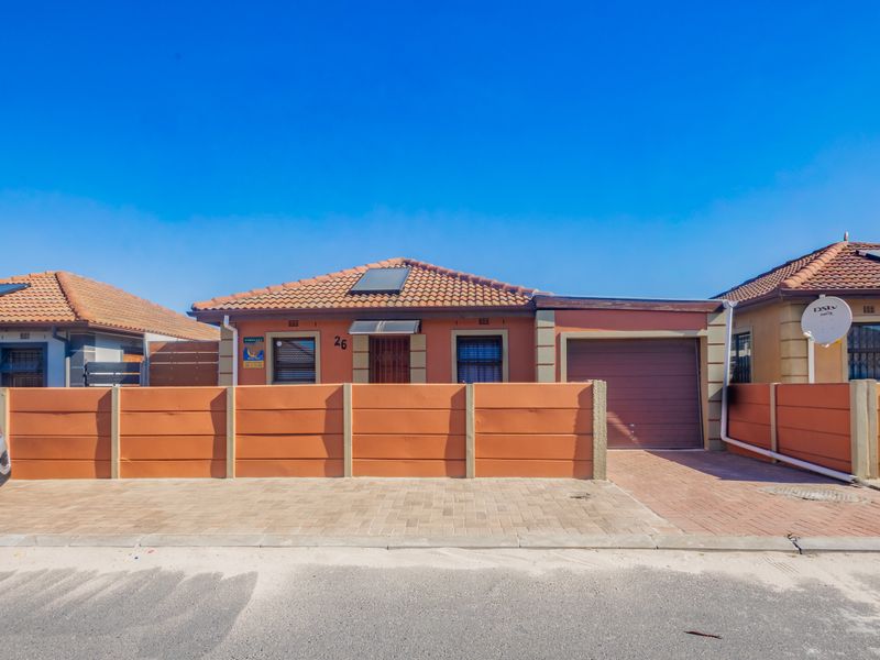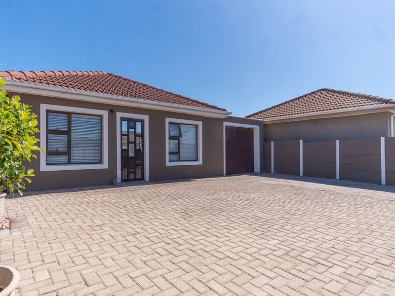 Enjoy secure lock-up-and-go living in Hagley, Kuils River — close to Zevenwacht shopping and schools — low-maintenance paved yard with under-roof braai, three bedrooms, two baths, triple garage.