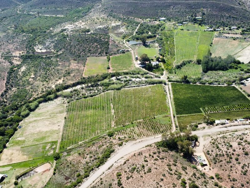 Embrace expansive Klein Karoo farm living 22 km from Ladismith with productive flood-irrigated fields, spekboom-covered hills, two homesteads, and ready infrastructure for commercial agriculture.
