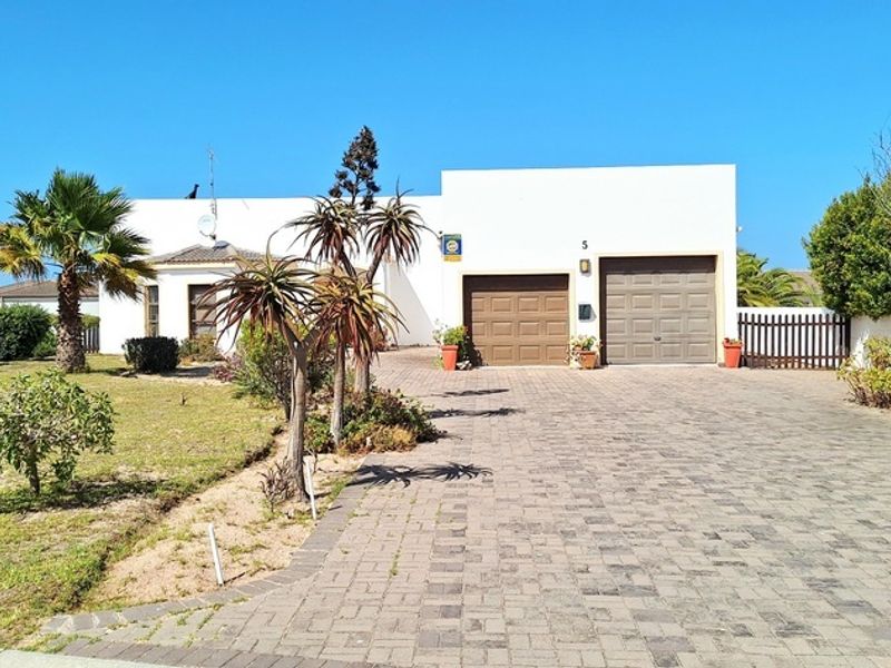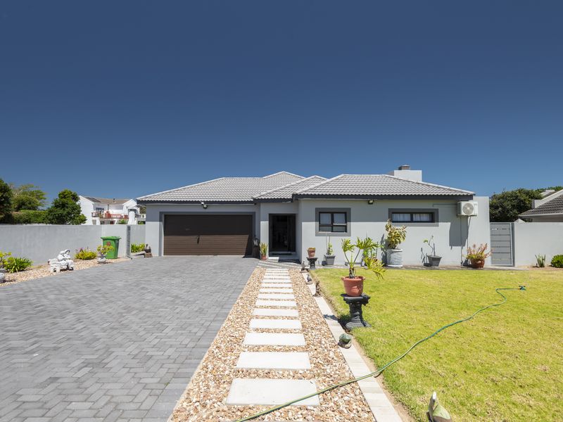 Relaxed coastal family living in Langebaan's Country Club cul-de-sac, near Mashie Golf Course, with wind-protected patio, established walled garden, ample parking for six and boat-sized garage.