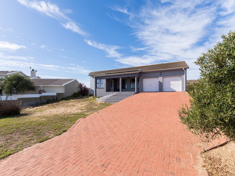 Coastal family living near Langebaan Yacht Club with sunlit open-plan living, built-in braai and scullery, greenbelt views, low-maintenance garden, double automated garage for a small boat; four bedrooms, two bathrooms.