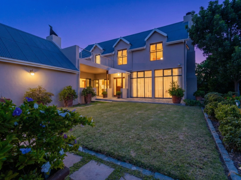 Live immersed in Myburgh Park's greenbelt with uninterrupted Langebaan Lagoon sunsets and a mature garden oasis frequented by buck and tortoises. Four bedrooms, two-and-a-half baths, double garage.